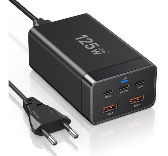 Быстрое зарядное устройство USB-C мощностью 125 Вт — компактная зарядная станция с 5 портами, поддержкой PD/USB-A, совместимая с iPhone/MacBook/Galaxy S23 Ultra/S22/S21/Thinkpad и другими ноутбуками/мобильными устройствами.