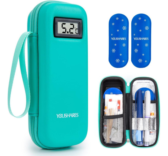 Дорожный термоконтейнер для инсулина YOUSHARES, одобренный TSA, с двумя пакетами со льдом для инсулина, индикатором температуры, сохраняет лекарства прохладными во время путешествия (зеленый).