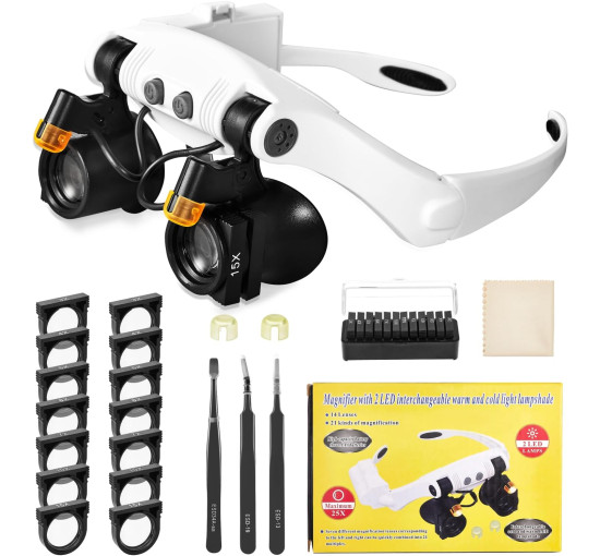 Гарнитура с увеличительными очками Anpro ACANDJ0201, увеличением 25X 14 линзами, белый (my-19091)