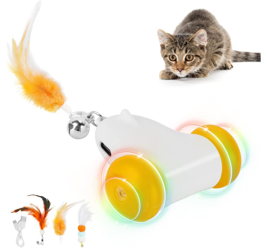 Интерактивные игрушки для кошек HAPPY HACHI, подходящие для использования в помещении, с 2 скоростями и красочной светодиодной подсветкой, заряжаются через USB, автоматические движущиеся игрушки для кошек и взрослых кошек, в комплекте с 3 перьевыми аксессуарами (белые).