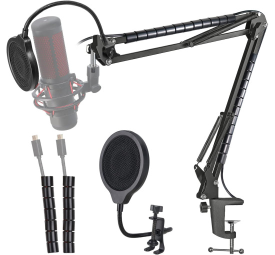 Микрофонная стойка Hyperx Quadcast - ножничный кронштейн для микрофона и 2 стяжки для упорядочивания кабелей. Совместима с Hyperx Quadcast S для улучшения качества звука. YOUSHARES