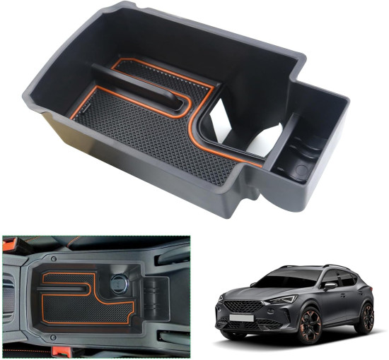 GAFAT Seat Leon MK4 | Cuprα Formentor 2020-2024 2025 Ящик для хранения, Новый Seat Leon 4 KL ST FR Formentor VZ Facelift Органайзер для центральной консоли, Аксессуары Formentor (оранжевый/латунь)