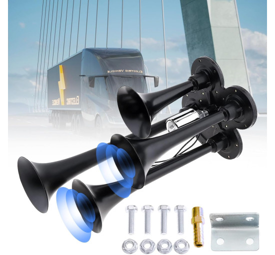 Пневматический звуковой сигнал 12 В/24 В с 4 трубками, сверхгромкий, 150 дБ, водонепроницаемый, для автомобилей, грузовиков, лодок и мотоциклов.