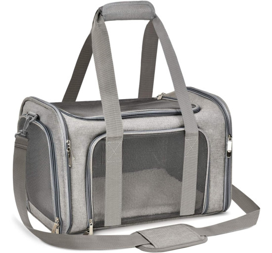 Переноска для кошек и собак, портативная мягкая переноска для домашних животных, средний/маленький размер, одобрена авиакомпаниями, складная сумка для кроликов, щенков и кошек весом до 7 кг для путешествий (серый, средний).