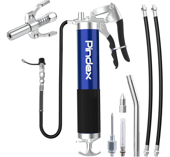 Шприц для смазки Pindex с муфтой, ручной насос для смазки с муфтой, 3 гибких шланга, игла для картриджа 400 г с концевым фитингом и насадкой.