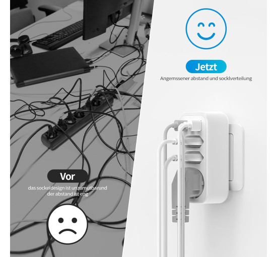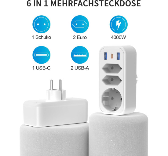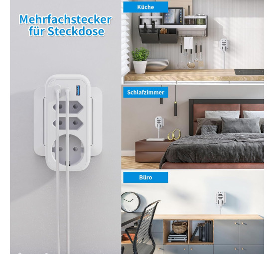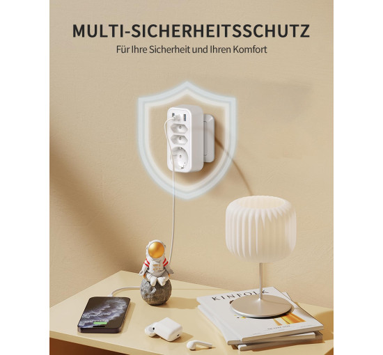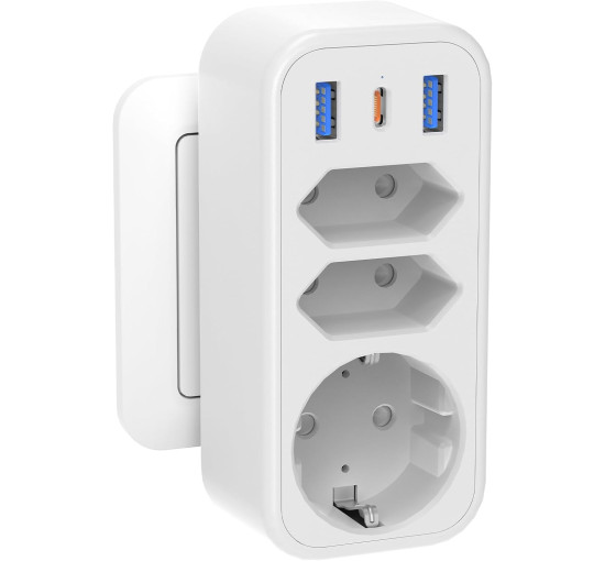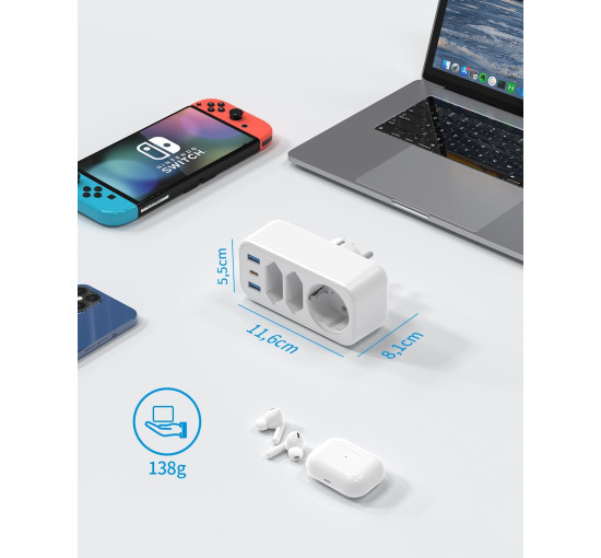 Багатофункціональна розетка без кабелю: завдяки розмірам всього 11,7 x 5,5 x 4,4 см та вазі 137,8 г цей адаптер неймовірно зручний і легко вміщується в рюкзаку чи сумці. Дозволяє отримати доступ до додаткових розеток у будь-якому місці та в будь-який час.