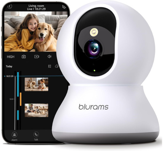 Blurams Pet Camera 2K, Камери для приміщень, Камера для собак, Камери домашньої безпеки 360°, Кольорове нічне бачення, Відстеження руху, Двосторонній зв'язок, Хмара та SD, Керування за допомогою застосунку, Працює з Alexa