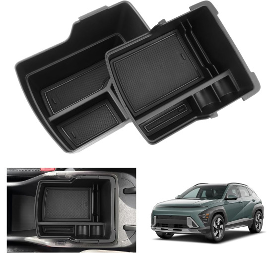 Сумісний з GAFAT: Коробка для зберігання в центральній консолі Hyundai Kona SX2 EV Hybird 2024 2025 2026, Організатор підлокітника Kona 2025 EV Electric з механічною коробкою передач та автоматичною коробкою передач [для всіх верхніх сидінь]