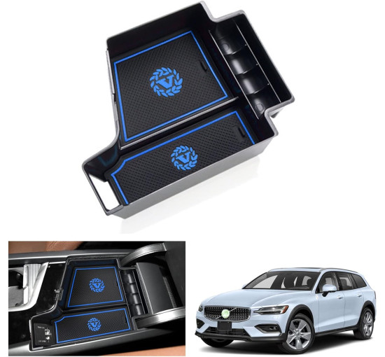 Контейнер для центральної консолі GAFAT для Volvo XC60 X60 V90 S90 2017-2024 2025, органайзер для підлокітника XC60 2023, відсік для зберігання, аксесуари для Volvo XC60 (синій)