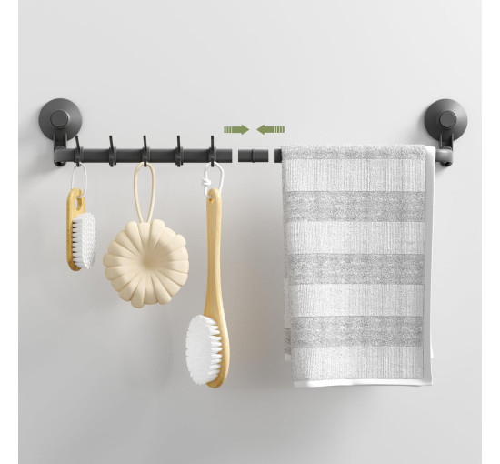Тримач для рушників LUXEAR на присосці, 24-дюймовий регульований тримач для рушників для душу, без свердління та знімний тримач для рушників з 5 гачками, настінний тримач для рушників для душу, ванної кімнати, кухонних дверей - сірий