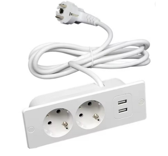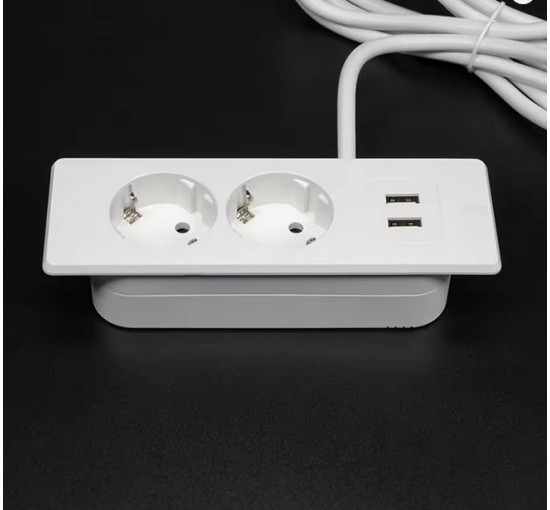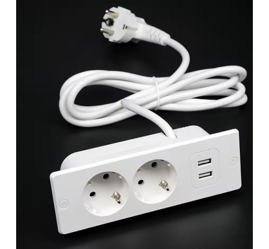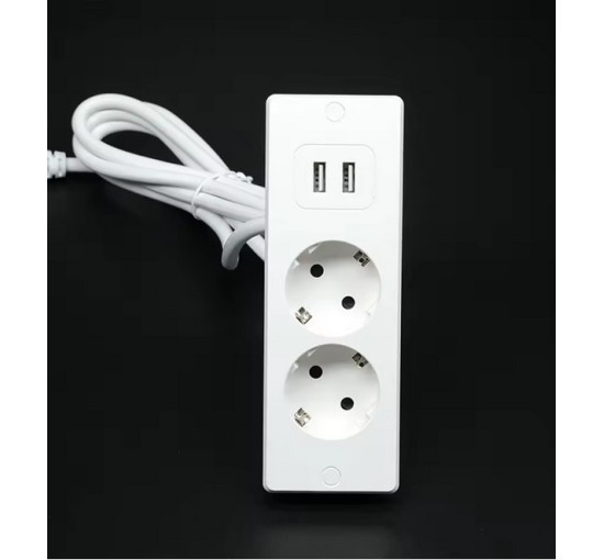 Подовжувач європейського стандарту USB-A, що підключається до стильної розетки, 2 порти і USB 4000 Вт, 10/16 А (my-17198)