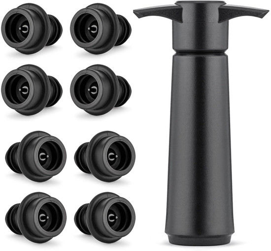 Вакуумний насос для вина з 8 пробками чорний (6029)