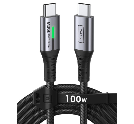 Зарядний кабель INIU USB C - USB C, QC 4.0 PD 5A 100W швидкої зарядки типу C плетений кабель для зарядки телефону для iPhone 16 15 Pro Max, Samsung S25 S24 Ultra, iPad Air